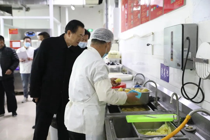 此次检查由党委书记、校长王树林亲自带队,膳食委员会全体人员参加,王树林强调,为保障师生用餐卫生安全,食品安全检查务必抓真、抓细,真正为全校师生营造安全、放心的用餐环境。