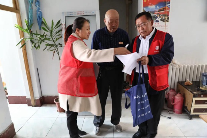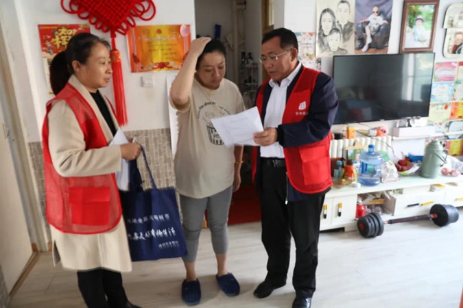 在老技校宿舍小区,走访人员入户向群众发放创建全国文明城市和国家卫生城市复审宣传资料和调查问卷,面对面宣讲创城意义与要求,引导居民了解创城、支持创城、参与创城。同时,结合入户情况进行摸排调研,掌握群众实际需求。