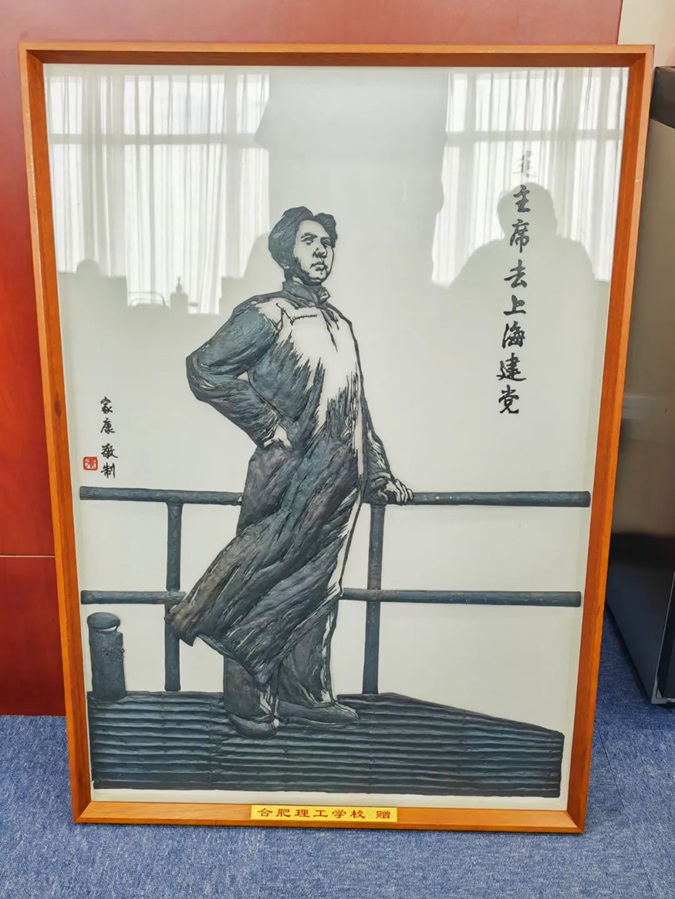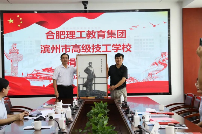 座谈会上,合肥理工教育集团向滨州市高级技工学校捐赠了非遗“芜湖铁画锻制技艺”传承人张家康先生制作的毛泽东主席铁画一幅。