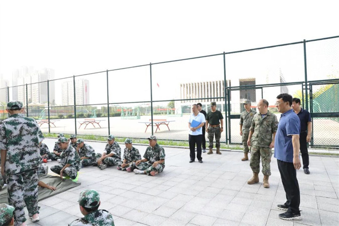 最后,胡燕龙一行前往军训场地,实地察看2025级新生军训情况,并与承训教官进行亲切交流,详细了解训练进度、内容设置以及学生的身体状况和精神面貌。胡燕龙对新生们展现出的昂扬斗志和严格的组织纪律性表示肯定,并对学校军训工作的有序组织和有效落实给予认可。