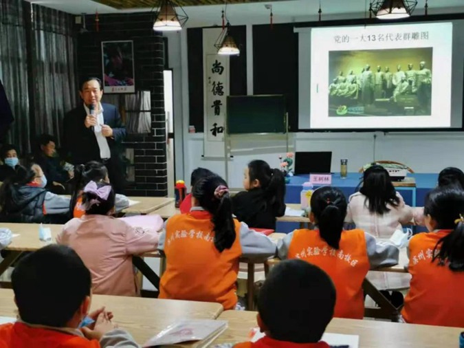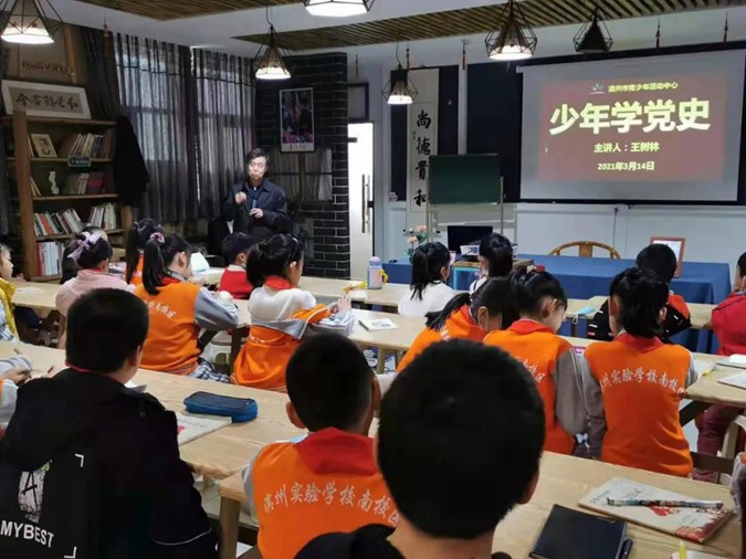 3月14日上午,滨州市高级技工学校党委书记、校长王树林应滨州一家文化学院邀请,专程来到滨州市青少年活动中心,为前来进行社会实践活动的滨州实验学校南校区“雷锋班”的师生及家长们做“百年恢宏 千秋伟业——纪念中国共产党成立100周年专题讲座”。