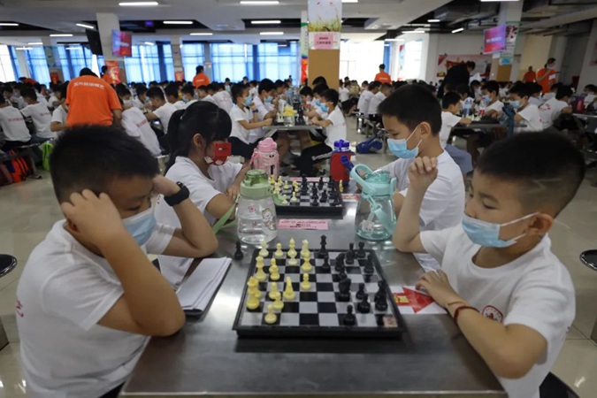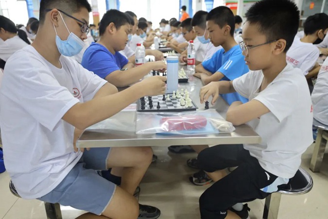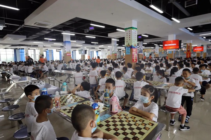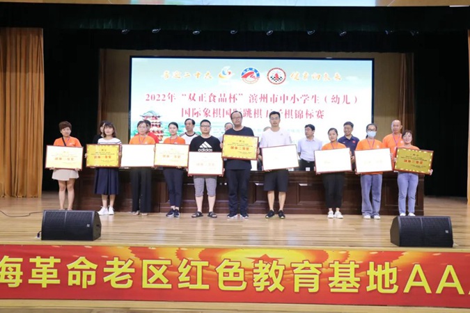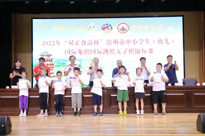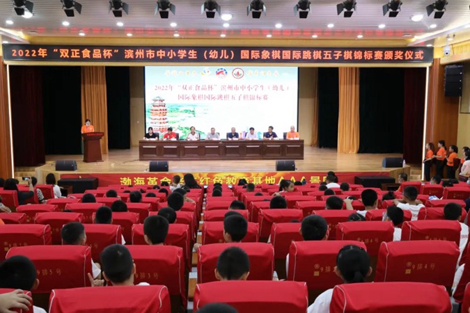 “强国复兴有我”2022年“双正食品杯”滨州市中小学生(幼儿)国际象棋国际跳棋五子棋锦标赛在滨州市高级技工学校举行,2000余名小选手及家长走进红色校园参加比赛。