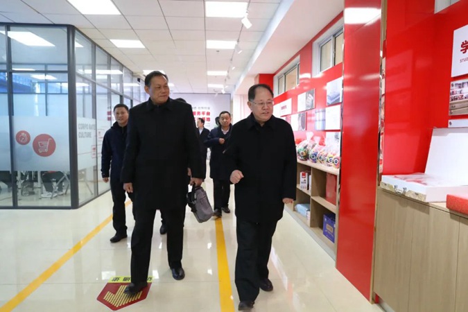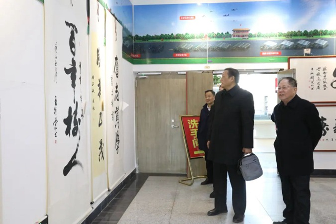 调研组一行参观了嘉兴楼实训基地、井冈山楼产教工坊、南泥湾劳动基地、古田楼学生公寓、北平楼红色展厅及党员活动室,听取了孟维赞关于学校党建工作的情况汇报。
