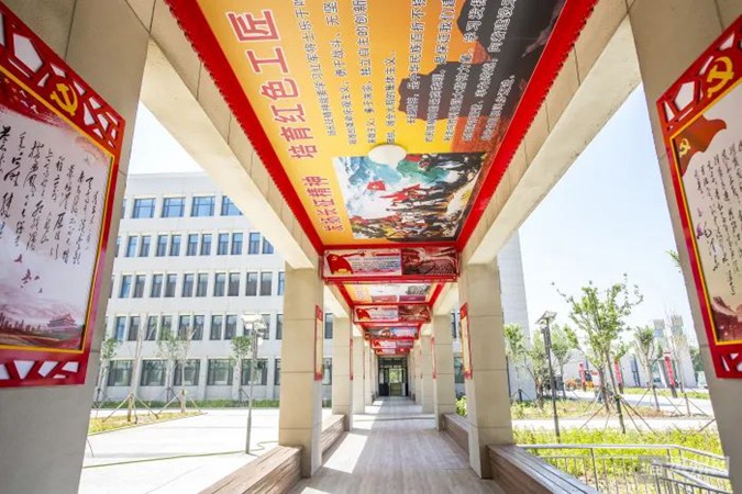 走在市高级技工学校的校园里,能感受到学校浓厚鲜明的“红色氛围”:校园内10座建筑物均以遵义、延安等革命纪念地命名,108个班级名称都以雷锋、刘胡兰等革命先烈及英雄、英模的名字命名,主要道路都以淮海、辽沈等重大战役名称命名,30多块景观石上面镌刻着井冈山、大别山等字样。