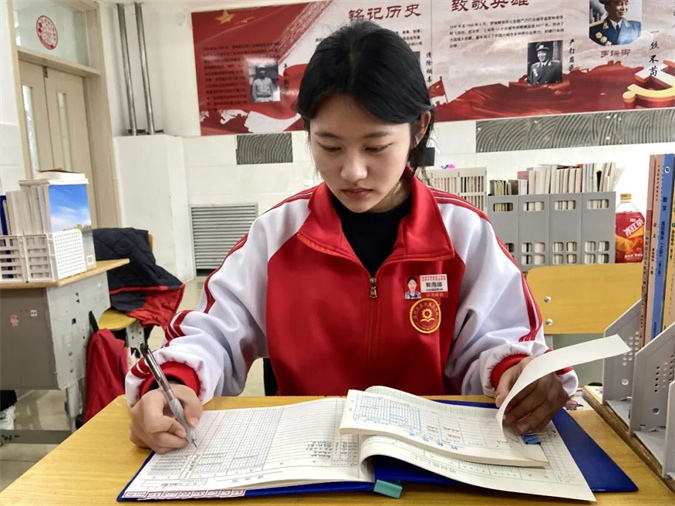 郭海璐同学性格开朗大方,做事认真踏实,有较强的责任心和团队意识,善于沟通与合作,能以积极乐观的心态面对学习和生活中的挑战。作为校检会成员,她严格遵守规章制度,认真完成执勤与检查工作,以身作则维护校园秩序。在班级中,她认真履行纪律委员职责,协助管理班级秩序,确保班级纪律严明、学风浓厚。同时,作为班级领操员,她用饱满的热情和规范整齐的动作带动同学,在课间操等活动中展现班级风貌。凭借踏实努力与良好表现,多次荣获“十佳”优秀学生、三好学生、班级之星等荣誉称号。