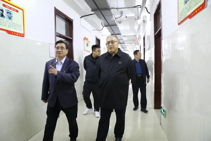 汪一峰一行参观了东方红广场、嘉兴楼实训中心、井冈山楼产教工坊、VR实训室及南泥湾师生劳动基地、古田楼学生公寓;最后到北平楼参观了廉政文化作品展厅、伟人塑像厅、红色藏品展厅、图书馆、百年党史馆、校史馆、国防教育展馆等红色展馆,实地了解滨州市高级技工学校红色办学及学生管理等情况。