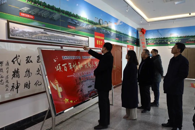 2月18日,文化和旅游部中国民族文化艺术基金会民族品牌发展专项基金执行主任温立艳到滨州市高级技工学校参观座谈。滨州市政协文化文史和学习委员会副主任薛希忠,著名收藏家徐汉林,滨州市高级技工学校党委书记、校长王树林,红色思政教学中心主任毛岳军陪同。