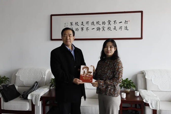 在座谈中,温立艳对学校红色育人给予高度评价,并现场向学校赠送书籍,双方就下一步合作进行了深入研讨。