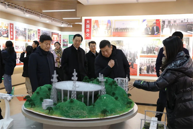 张书鹏一行参观了东方红广场、嘉兴楼实训中心、韶山楼红色文化;穿过红色连廊,到井冈山楼现场参观了校企合作项目“数字工坊”和京东直播实训室;随后到北平楼参观了伟人塑像厅、红色藏品展厅、图书馆、党史馆、校史馆等展馆,实地了解学校关心下一代工作开展情况。