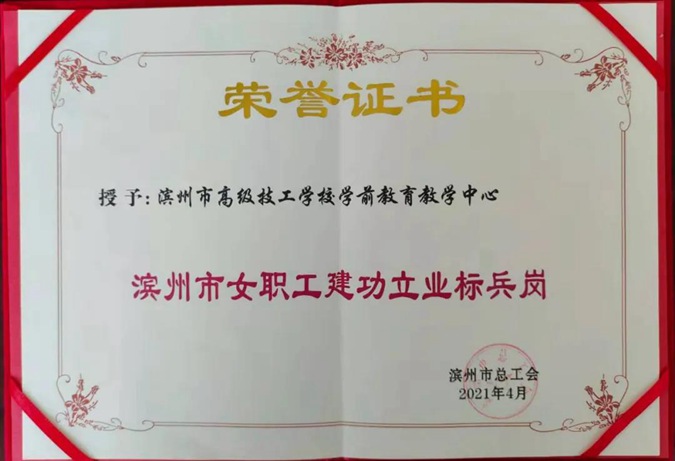 【喜讯】滨州市高级技工学校学前教育教学中心喜获 “滨州市女职工建功立业标兵岗”