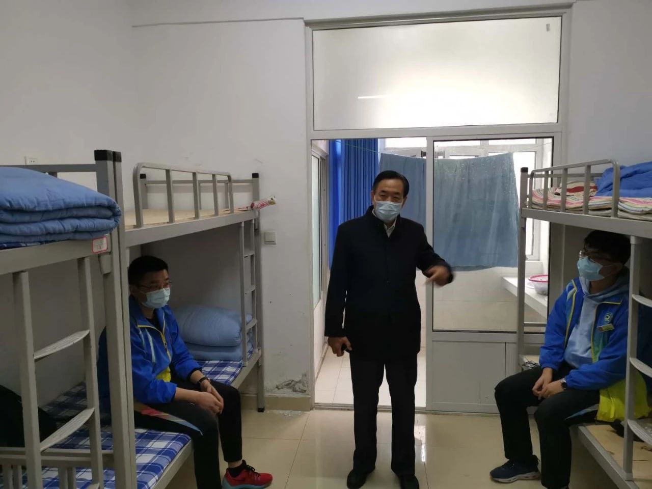 侯复东一行到达校门后,通过测量体温正常后进入校园,实地查看学生入校环节。随后进入学生宿舍、餐厅、教室,全面了解防疫物资储备、疫情应急处置等情况,最后在韶山楼二楼会议室查阅相关材料。每到一处,督导组都仔细询问,反复叮嘱,决不放过任何一个薄弱环节和工作短板。侯复东指出,面对存在问题学校要即知即改,把风险想在前,工作干在前,确保学生顺利返校。