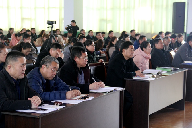 总结过去,成绩斐然,展望未来,激情澎湃。王树林全面总结了2018年我校取得的辉煌成绩,从“2019,我们一起齐步走,在创建省示范校建设上开好头;2019,我们一起健步走,在创建省级精神文明单位上走在前头;2019,我们一起快步走,在打造‘传承红色基因,培养时代新人’红色技校方面走在全省前头;2019,我们一起疾步走,在产教融合、校企合作、短期培训方面走在前头;2019,我们一起阔步走,在教学质量提升、创新创造方面走在前头;2019,我们一起大步走,在党的建设、队伍建设、中心工作方面‘万类霜天竞自由’;2019,我们一起并肩走,在‘学争上’活动中继续拔得头筹;2019,我们一起加速走,在创建学习型院校道路上赛风流;2019,我们一起携手走,在省委提出的抓落实年里‘百舸争流’”九方面对2019年度学校重点工作作出了安排部署。