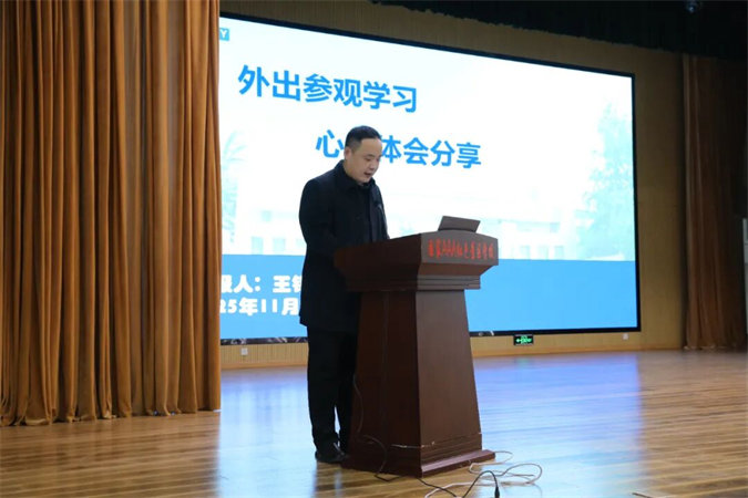 第二阶段,赴外地学习培训的优秀代表依次分享经验成果。首先,赴淄博、潍坊两地职业学校参观学习的学工科副科长、团委书记王锡辉围绕学生管理工作分享了深刻见解与实践思考。他提出,要坚持理念先行,牢牢把握立德树人根本任务,构建“大思政” 育人格局,让思政教育贯穿学生成长全过程;要注重载体创新,通过丰富校园文化活动,全面提升学生综合素养;要强化队伍建设,打造专业化、职业化的学生工作队伍,为学生成长保驾护航。同时,他结合班主任工作实际,剖析了当前工作中存在的典型问题,并针对性地提出改进建议,为我校进一步优化学生管理、提升育人质量提供了有益借鉴。