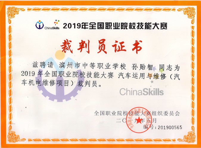 5月28日至5月30日,2019年全国职业院校技能大赛“上汽通用杯”(中职组)汽车运用与维修技能大赛在天津东丽区职业教育中心举行。我校汽车工程系孙贻智老师受聘为“汽车机电维修项目”裁判员。
