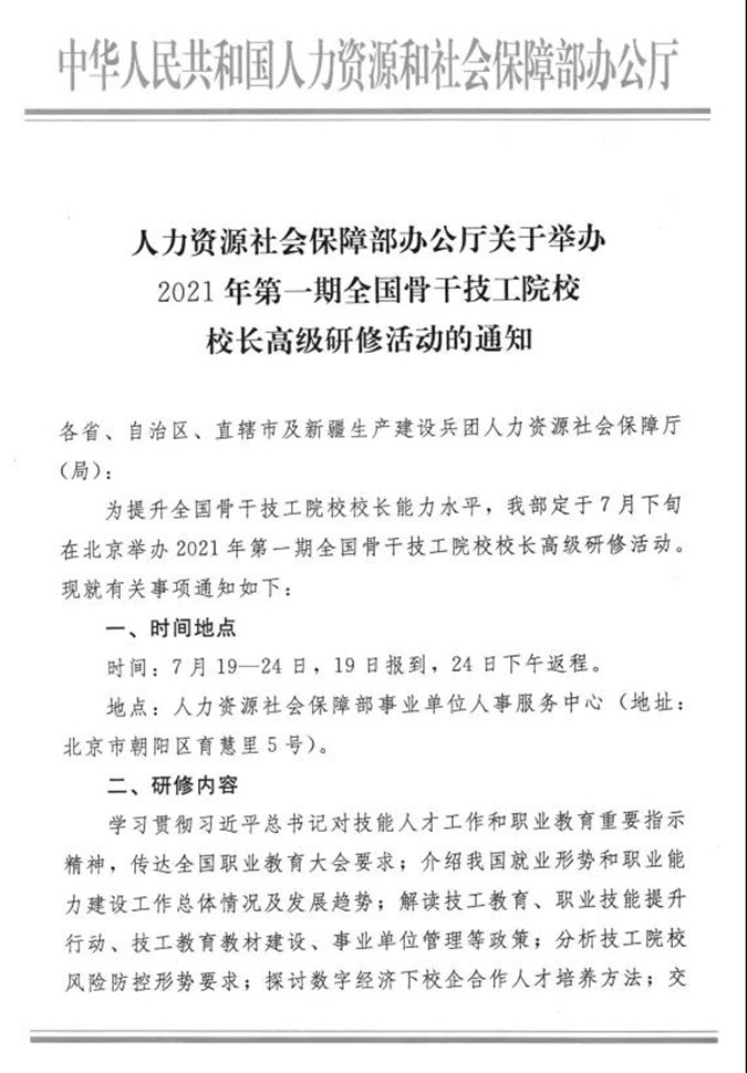 7月19日至24日,国家人社部举办“2021年第一期全国骨干职业院校校长高级研修班”,王树林作为山东省两位代表之一参加。国家人社部副部长汤涛、职业能力建设司司长刘康、副司长王晓君等出席研讨班。参加研修班的64名校长,边学习,边交流,边考察,边研讨,王树林校长随感而发,作800字四言诗《技工教育 大有可为》,以朗朗上口的语言抒发学习感想,畅谈红色办学,获在场人员一致好评。