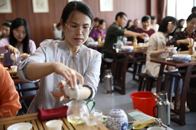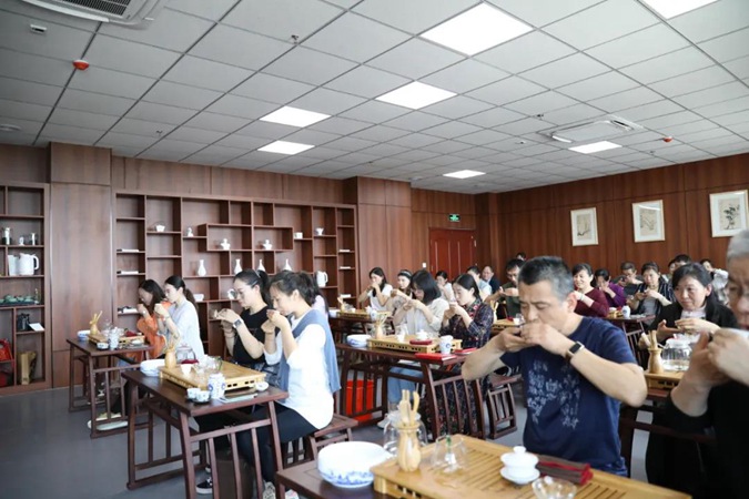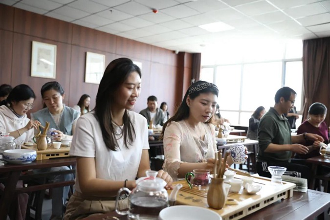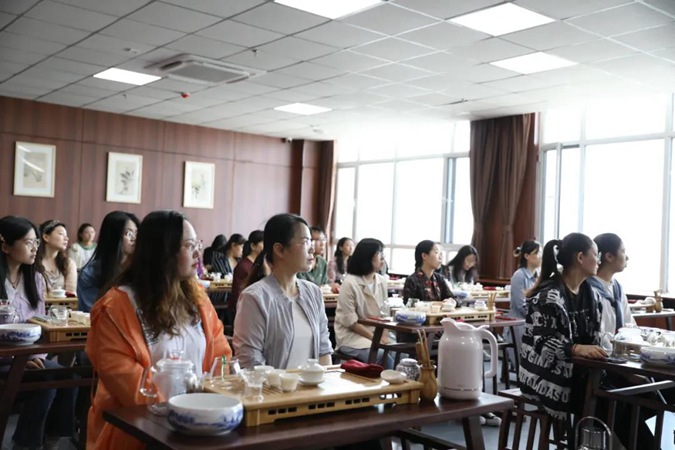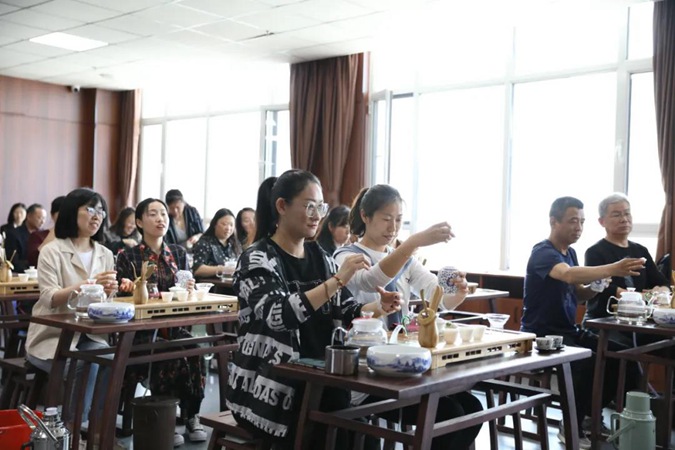 随后,刘雯芳老师为大家进行了精彩的茶艺表演 —《鲁风茶韵》,她以平稳的节奏演示了泡茶全过程:温杯、洗茶、泡茶、奉茶……娴熟的手法、优雅的姿态,让在座的老师啧啧称赞,深感中国茶文化博大精深。