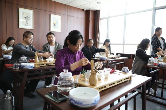 为了传承中华优秀传统文化,5月18日,滨州市高级技工学校诚邀滨州市茶文化协会走进校园,在北平楼八楼茶艺室为老师们带来充满书韵清香的一场生活茶课。滨州市文化馆馆长、滨州市非物质文化遗产中心主任李晓静,滨州市茶文化协会主席王雪征,理事长马宝玲,常务副主席张群,副主席仝新龙,秘书长大宇,副秘书长索学玲、刘雯芳,滨州市高级技工学校党委副书记、副校长孟维赞,计划财务科科长毛岳军参加活动,学校部分教职工现场学习。