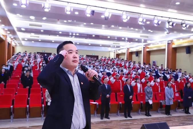 滨州市高级技工学校团委书记王锡辉领誓,团员集体宣誓