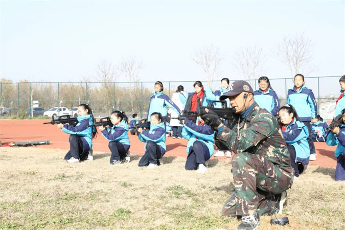 拓展活动结束后,同学们分批次参观了红色展馆和国防教育展厅。在滨州市高级技工学校红色讲解员的引领下,同学们一边聆听革命先辈抛头颅、洒热血的革命历史,一边驻足端详珍贵的老照片,仿佛那峥嵘的革命岁月就在眼前。一个个感人至深的革命事迹、一件件镌刻着革命历史的实物,在孩子们心里烙下深深的红色印记。在国防教育展厅,同学们学到了很多现代国防和武器装备的知识,还亲手体验了九五式步枪射击。