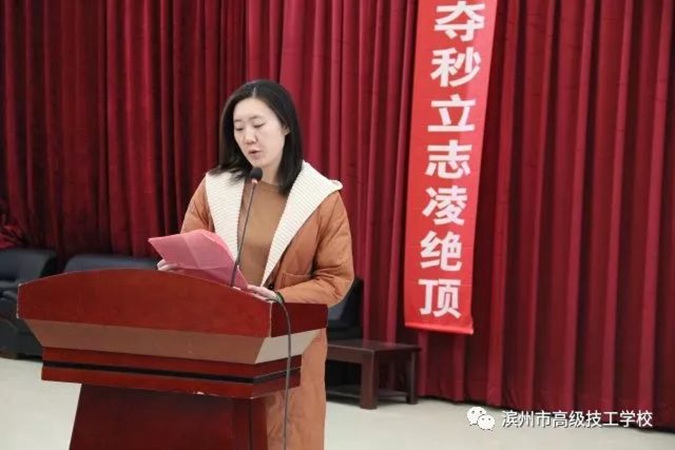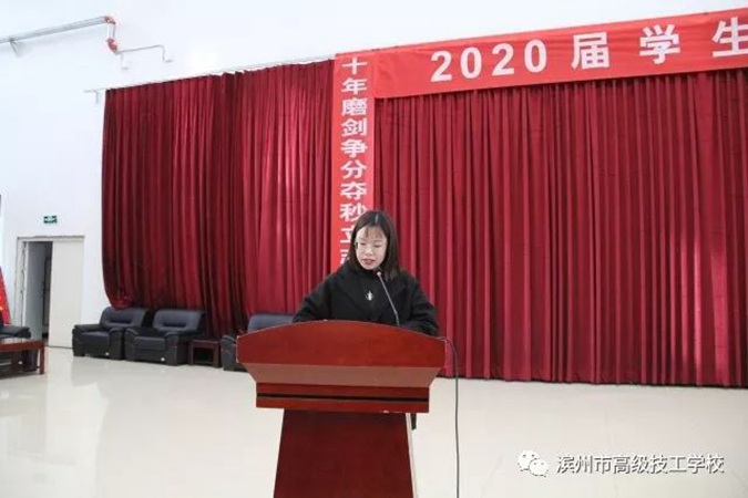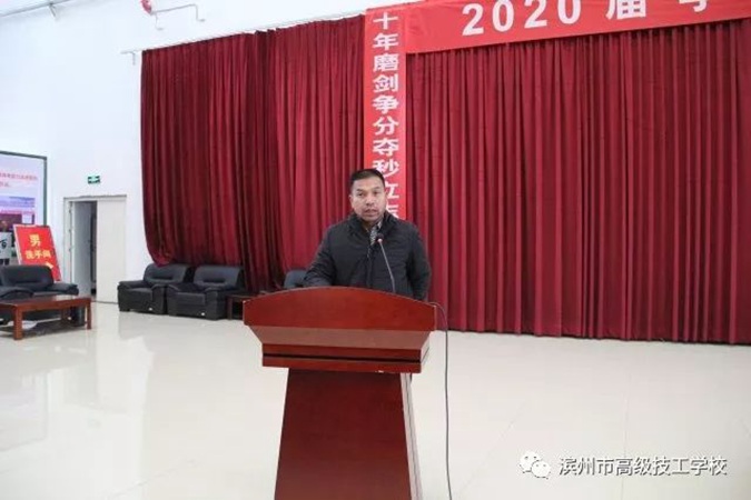 12月1日上午,滨州市高级技工学校(滨州市中等职业学校)隆重举行2020届学生春季高考冲刺誓师大会,2017级全体师生及学生家长共同参加。学校党委书记、校长王树林,党委委员、副校长刘岳,教务科科长赵鹏飞,基础部主任张绪强,学工科副科长张瑞在主席台就坐。大会由刘岳主持。