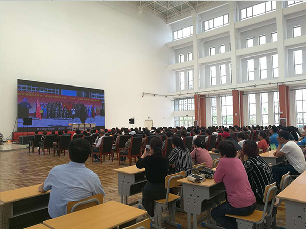 3. 体育馆观看学校宣传片。