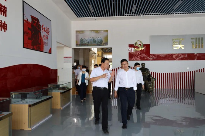 林宇一行参观了嘉兴楼实训中心,经东方红广场到北平楼参观了学校图书馆、将军书画展厅等,实地了解学校红色文化建设情况。随后,到井冈山楼参观了校企合作项目产教工坊。