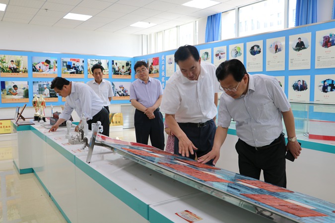 丁爱军一行观看了我校红色办学纪实宣传片,参观了学校习语近人展厅、老渤海精神展厅等5个红色育人教育基地,实地查看了“南泥湾”师生菜园,深入广场、教室、学生宿舍、餐厅、红色展藏馆等进行了详细考察,并进行了座谈。