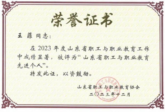 省工业和信息化厅、省教育厅、省社会组织总会、省职工与职业教育协会领导出席会议并讲话,副会长钱乃余、佟西玉分别宣读了2023年山东省职工与职业教育先进单位、先进个人表彰决定和山东省产教融合示范单位(基地)、示范性品牌专业、职工与职业教育领军人物、创新创业先锋、专业(学科)骨干带头人表彰决定。滨州市高级技工学校被评为山东省产教融合示范单位,这是继2020年后,学校再次获得此项殊荣。同时,学校党委副书记、副校长孟维赞荣获山东省职工与职业教育领军人物称号,组织人事科科长杜湖亭、组织人事科副科长王菲分别获得山东省产教融合创新创业先锋、山东省职工与职业教育先进个人称号。