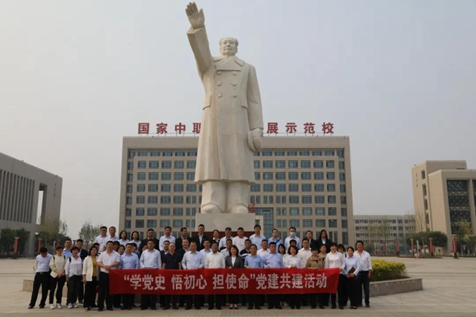 5月13日,滨州市医疗保障局、中国银行滨州分行到滨州市高级技工学校开展党建共建活动,滨州市扶贫办共同参加活动,120余名党员干部在AAA景区校园参观学习。