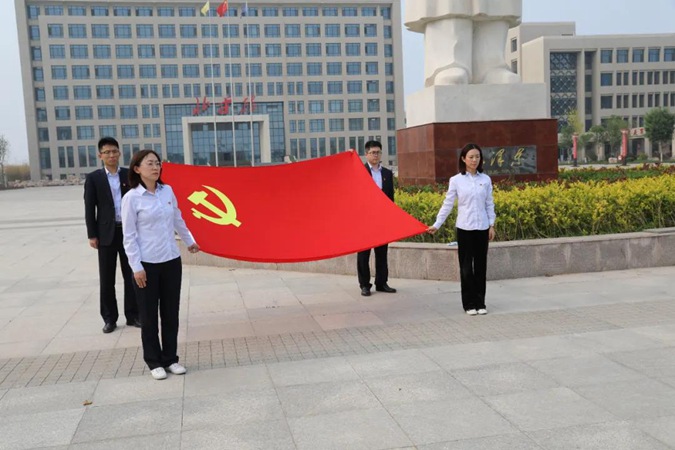 “我志愿加入中国共产党,拥护党的纲领,遵守党的章程……永不叛党。”在东方红广场毛主席雕像前,全体人员面向党旗重温入党誓词,铿锵有力的誓言,震撼着每一位党员的心灵,激励大家不忘初心,砥砺前行。