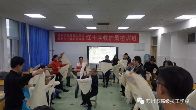 为保障学生安全,普及应急救护常识,提高教师救护能力,12月24日,滨州市高级技工学校组织了红十字救护员培训班,学校36名教师在遵义楼参加了为期2天的救护培训。红十字会救护培训教师王艳梅和学校老师许建光授课,讲授救护理论知识和救护操作技能。