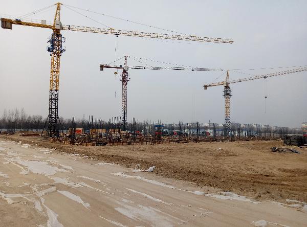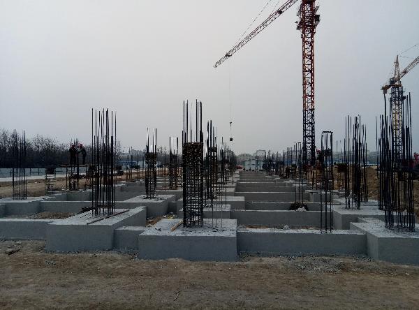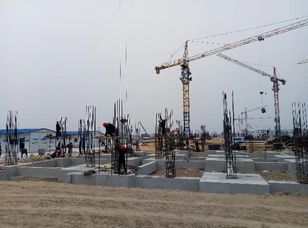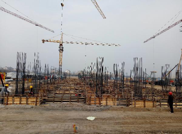 新校区建设工地现场塔吊林立、机械轰鸣、施工人员正在忙碌而有序的开展工作。