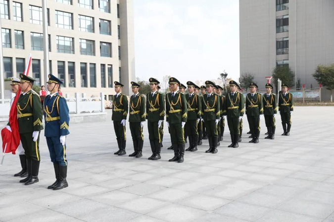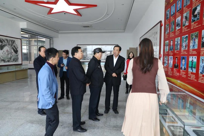 在东方红广场,任光礼将军与全体师生共同参加了升国旗仪式。随后,来到实训中心,了解学生实训情况,参观了学生作品展示。到韶山楼、井冈山楼参观了教学楼红色文化,经红色连廊到北平楼参观了伟人塑像厅、红色图书馆、将军书画展厅和党史教育展馆、国防教育展馆等。