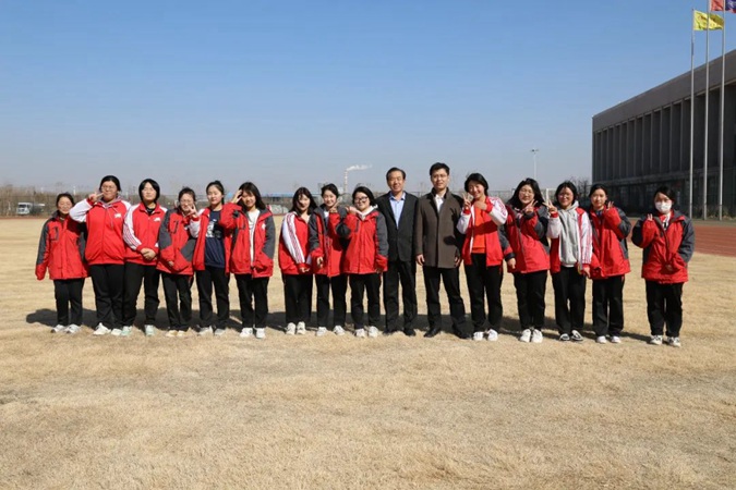 在新时代体育场,郑辉与学生交流并合影。随后,全体人员到北平楼参观了伟人塑像厅、红色图书馆、百年党史馆。