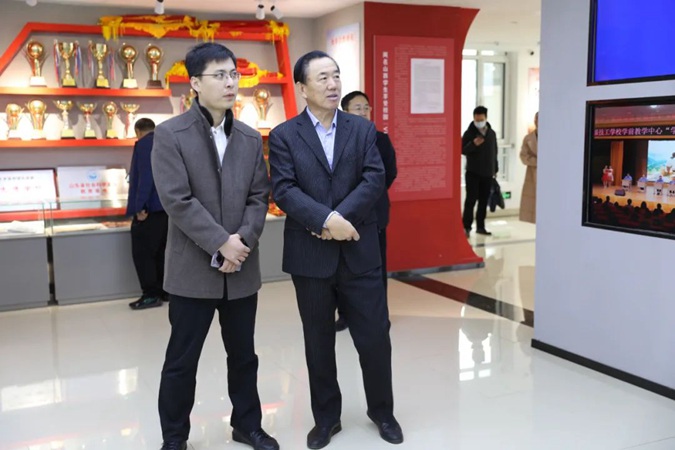 参观结束后,在北平楼八楼会议室召开调研考察座谈会。收看了学校宣传片《信仰》,王树林介绍了学校红色办学和校企合作、专业建设情况。郑辉对学校办学特色和育人成果给予了高度评价,并希望学校大力推进产教融合、校企合作,全力建设品牌专业,为建设更高水平富强滨州、推进“六个滨城”建设培养更多的优秀技能型人才。