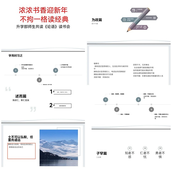 升学部教师精心准备了新年新愿望、心灵加油站、爱心鼓励我、教师讲论语四个环节,师生共同开展线上读书活动,通过阅读引导学生提升思想境界,增强精神力量。