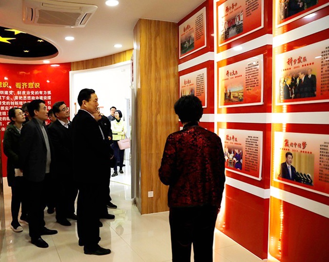 全体党员在玉龙湖社区居民影院怀着对祖国的热爱齐声高唱《我和我的中国》,社区党委书记崔丽杨引领学校党员依次参观了红色驿站、暖心阁、书画院、居民文化中心、健康管理中心、综治中心、微视制作中心、北镇记忆长廊,了解社区以党建为引领,以服务为核心的服务理念。