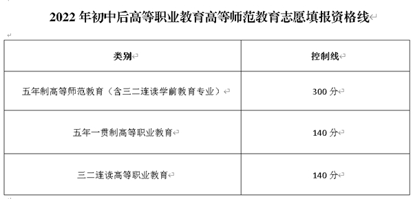2022年初中后高等职业教育高等师范教育志愿填报资格线
