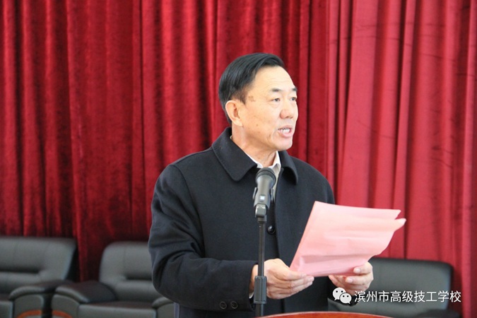 王树林在致辞中指出,滨州市高级技工学校是第二批国家中等职业教育改革发展示范学校,第三批山东省示范校及优质特色中等职业学校建设工程立项建设学校。学校全面落实立德树人根本任务,以“传承红色基因,培育大国工匠”为载体,打造一处不是军校的军校,铸造一所不是党校的党校。仅今年,学校荣获省先进集体4个(山东省关心下一代教育基地、山东省技工教育先进集体、山东省教育系统先进集体);技能大赛等市级以上获奖34个,是去年的1.3倍;560余团体,1.2万人来校参观;在全省3次、全市2次大会上作关于红色教育的典型发言;红色办学经验被推报为全国职业院校德育工作典型案列、全国中等职业学校“文明风采”活动优秀案例和全国职业院校文化建设50强案例,一年4次荣登《学习强国》平台,《中央电视台》等主流媒体给予深度报道。