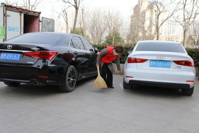 志愿者热情高涨,分工合作,乐在其中,发扬不怕脏、不怕累的优良作风,清扫台阶地面上的生活垃圾,拾捡绿化带中的烟头杂物,清理草坪上的果皮纸屑并分类归集,细心摆齐放正停放的电动车和自行车,社区环境焕然一新。