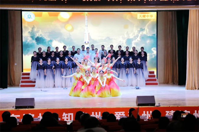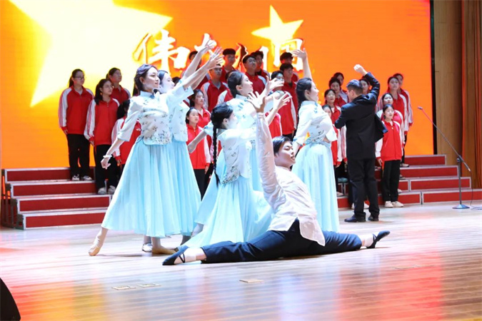 教师组《天耀中华》压轴出场,激昂豪迈的歌声,轻盈优美的舞蹈,传递出技校人对国家繁荣昌盛、人民幸福安康的美好祈愿,展现出技校人饱满的精神风貌和拳拳的爱国之情。