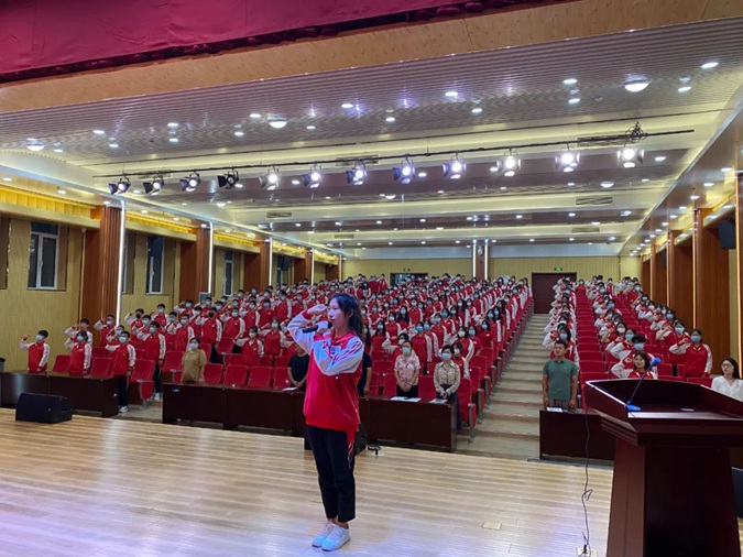随后,梁文茹同学带领全体同学宣誓,铮铮誓言,振奋人心,振聋发聩,表达出高三学子势不可挡、所向披靡的勇气和战胜高考的坚定信念,正式吹响了奋战百日的冲锋号。