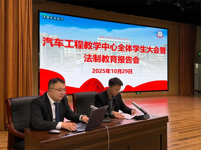 为强化学生法治观念,规范日常行为举止,筑牢校园安全稳定防线,10月29日,滨州市高级技工学校汽车工程教学中心召开全体学生大会暨法制教育报告会。会议由青年教师邓甲杰主持,全体学生齐聚报告厅,共同接受纪律警示与法治熏陶。