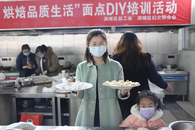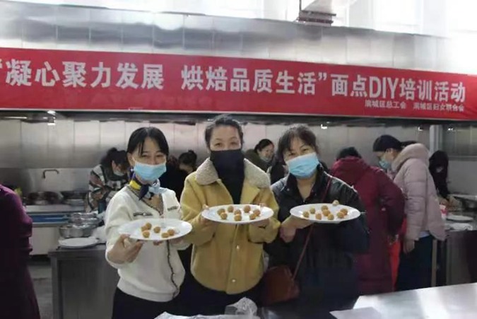 2月25日,由滨城区总工会、滨城区妇联共同举办的“凝心聚力发展 烘焙品质生活”面点DIY培训活动在滨州市高级技工学校举行。党委书记、校长王树林,党委副书记、区总工会党组书记、主席史文莲,党委委员、副校长刘岳,党委委员、纪委书记、市纪委监委监察专员宋志刚出席,区总工会组织的“女职工维权行动月”线上有奖竞答活动中中奖的30多个家庭参加活动,区妇联党组书记、主席李孝红主持。