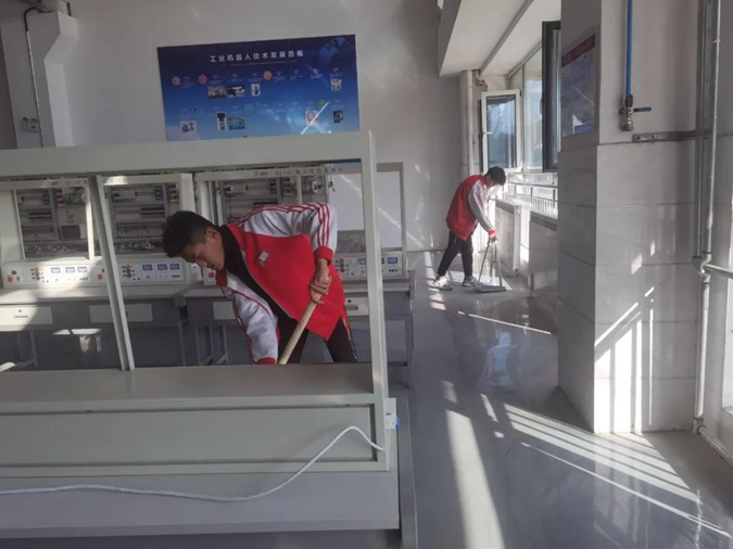 3月3日,智能制造教学中心举行学雷锋月启动仪式,并组织全体学生清扫实训基地