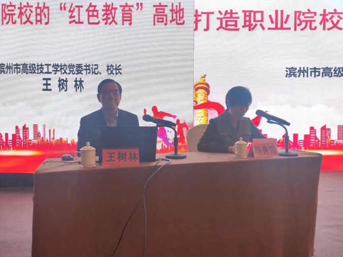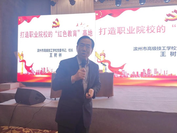 山东省教育厅思政处处长陈成标,山东省职业技术学会会长马广水出席会议并讲话;潍坊护理职业学院党委书记曹晓楠,潍坊教育工委副书记周书坤致辞。滨州市高级技工学校(滨州市中等职业学校)党委书记、校长王树林作为全国德育圈智库专家、中国职业技术教育学会德育工作委员会副主任、山东省职业技术教育学会“课程思政与思政课程”研究分会副会长应邀作专家报告——《打造职业院校的“红色教育”高地》。