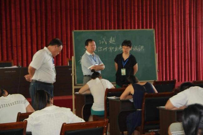 8月12日,2014年我校教师招聘笔试考试工作顺利完成,共有符合条件的42名考生参加了笔试。校长赵立军、副书记史文莲、副校长刘冠利到考点巡考。