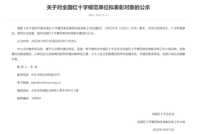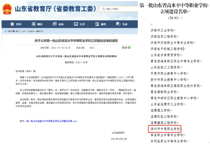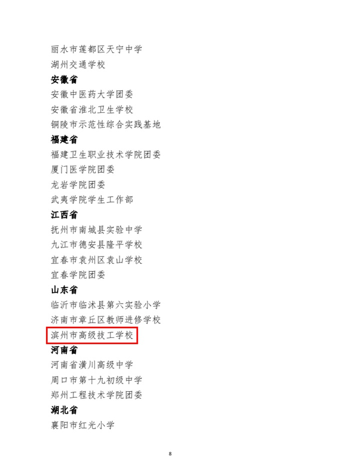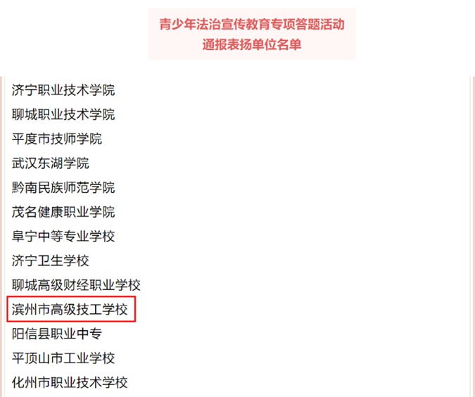 2022年10月31日,中国红十字会总会下发《关于对全国红十字模范单位拟表彰对象的公示》,滨州市高级技工学校作为“全国红十字模范单位”入围拟表彰公示名单,是全国97所、全省3所入围学校之一。