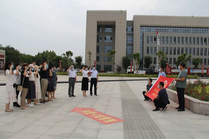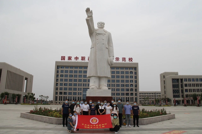 6月16日,滨州市疾控中心副主任马长利带领21名党员干部到滨州市高级技工学校开展“庆七一·重温入党誓词”主题党日活动,学校党委委员、副校长刘仲凯陪同。