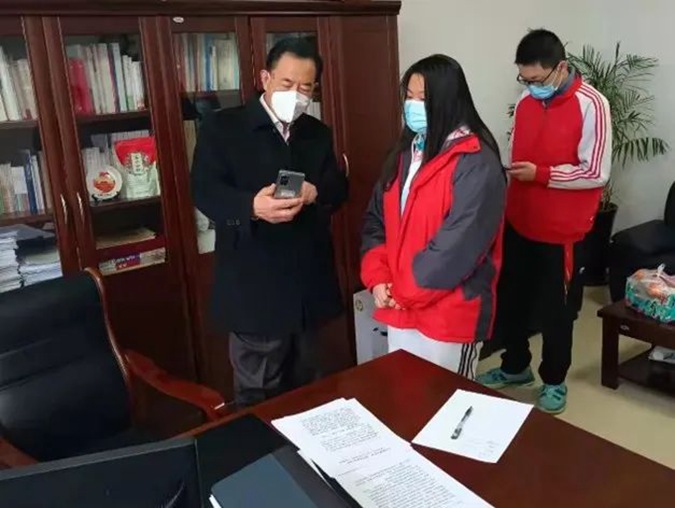 学校有几名学生因为路途遥远无法回家,在保障其衣食起居、健康检测的同时,学校领导亲自关心他们的线上学习情况,确保孩子们有好的学习效果。